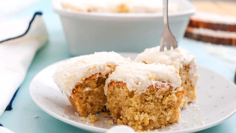 - True coconut flavor all the way through — Coconut milk in the batter and frosting means every single bite tastes like the tropics, not just the topping.