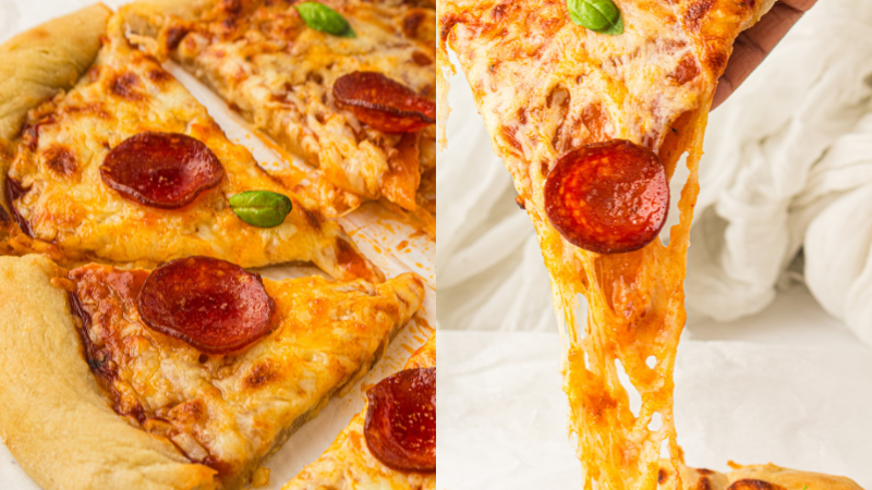 - Add sauce, cheese, and toppings. Bake 10–15 minutes until crust is golden and cheese is bubbling.